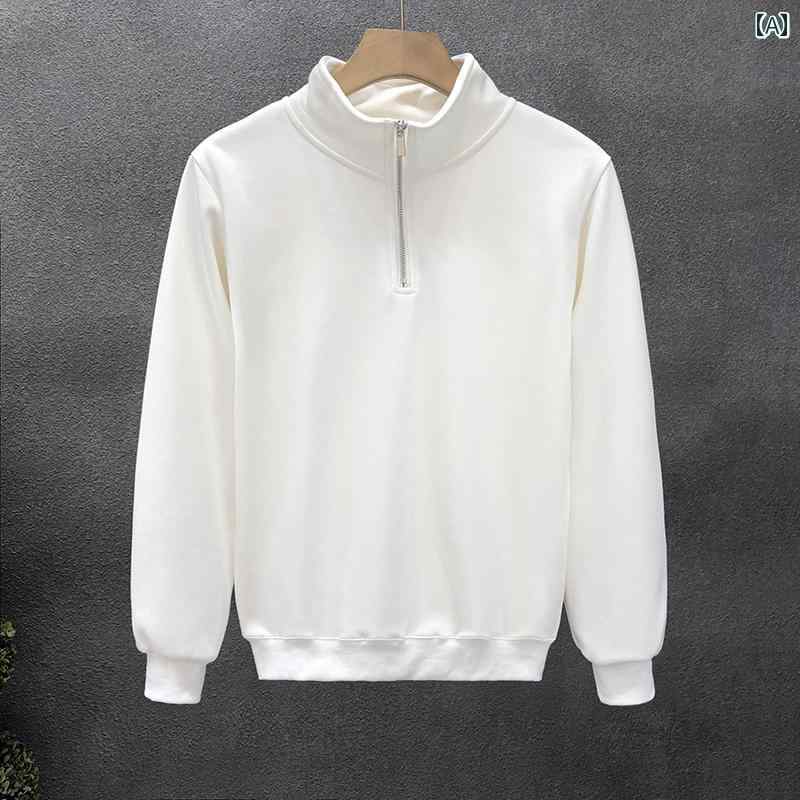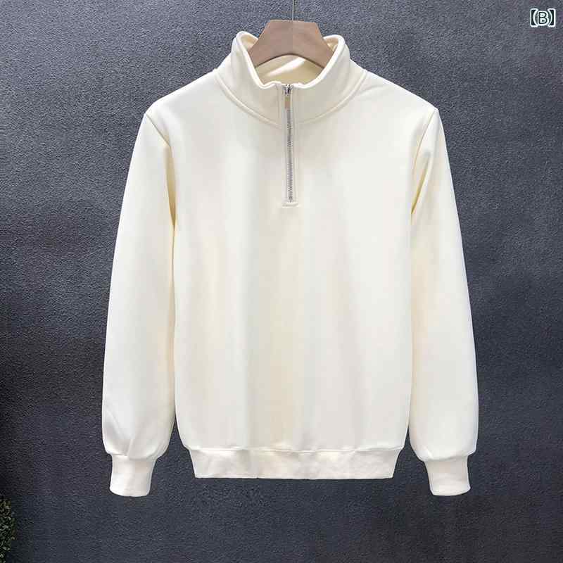 シャツ メンズ アウター 春秋 カジュアル トップス 長袖 スウェット ホワイト ベージュ ブラック ハーフジップ