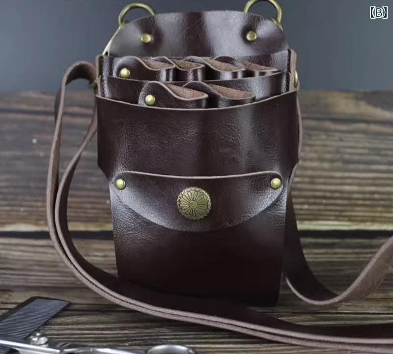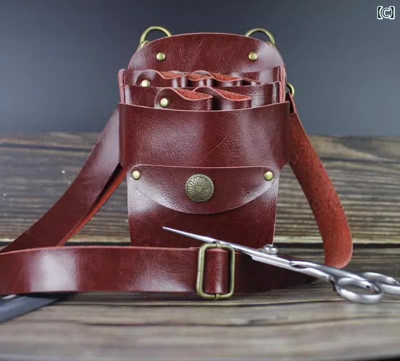 シザーバッグ シザーケース 美容師 トリマー メンズ レディース ウエストポーチ レザー ハサミ ブラック ブラウン ネイビー ボディバッグ