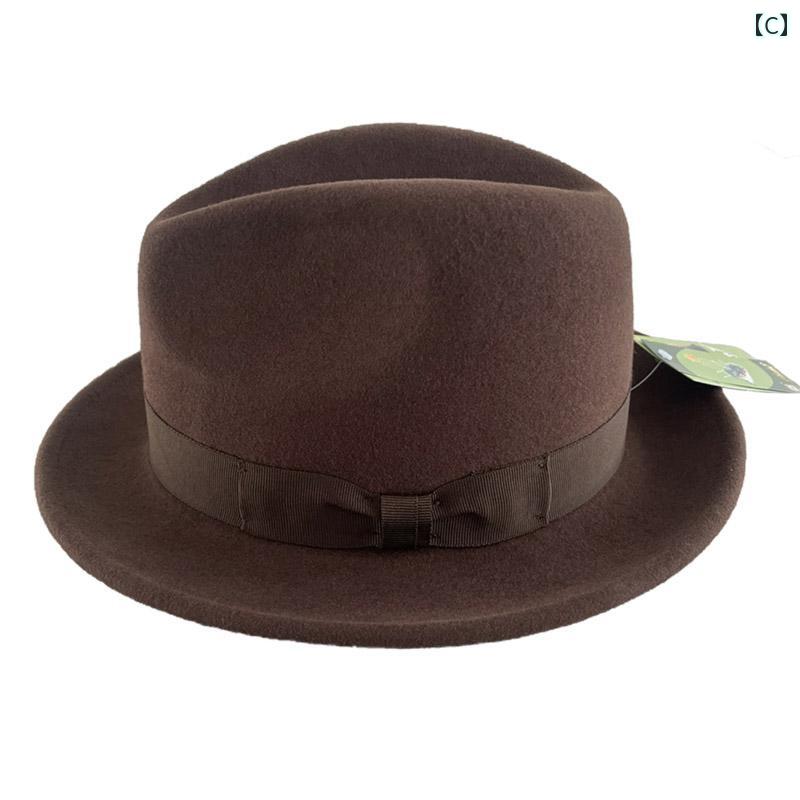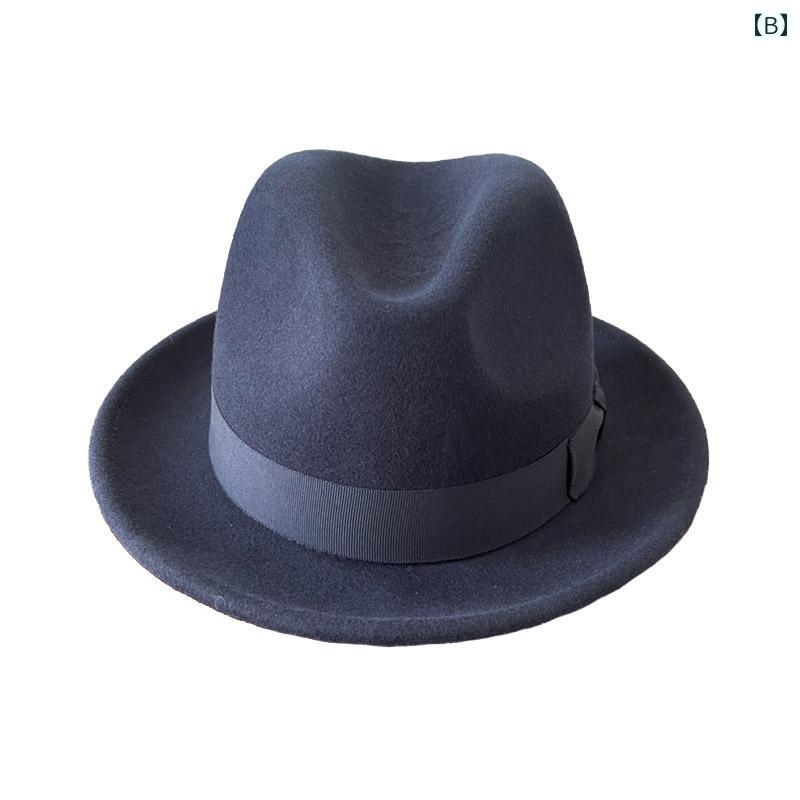 中折れハット メンズ 紳士 帽子 蝶ネクタイ ウール 英国 短いつば ハット ジャズハット レトロ 韓国 秋冬 黒 紺 茶 暖かい