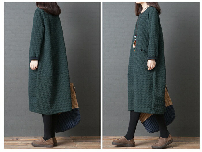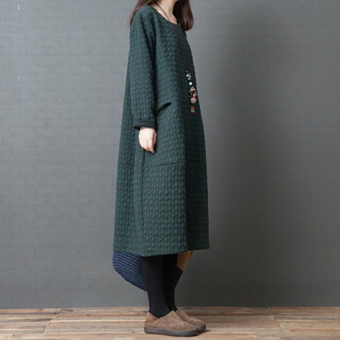 ワンピース レディース 長袖 ロング丈 ワンピース 続々登場 グリーン ブラック M L XL