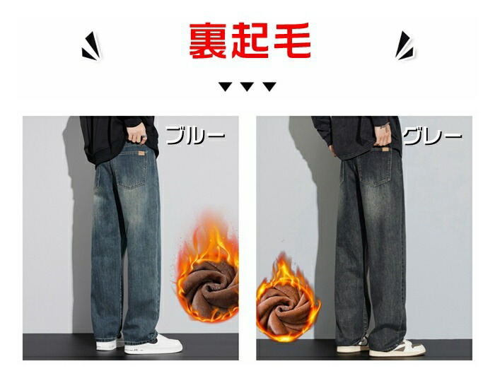 裏起毛 ワイドデニム デニムパンツ 暖 ズボン パンツ 新登場! ブルー(裏起毛無し) グレー(裏起毛無し) ブルー(裏起毛) グレー(裏起毛) 29 30 31 32 33 34 36 38