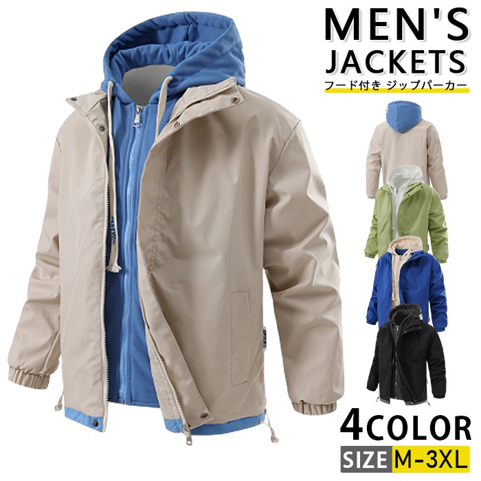 ジャケット メンズ フード付き ジップ メンズファッション 早い者勝ち ブラック ベージュ ブルー グリーン M L XL 2XL 3XL