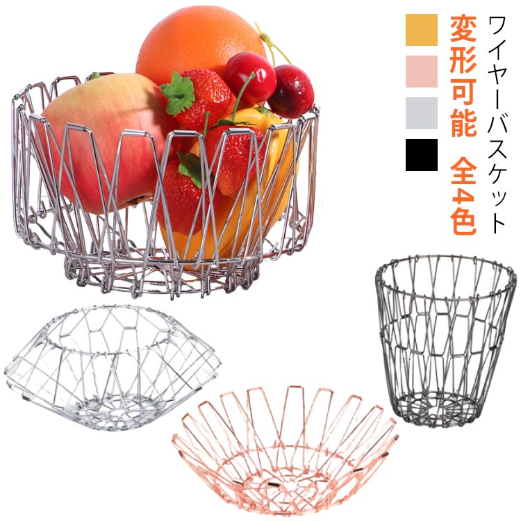 ワイヤーカゴ 変形 丸型 収納バスケッ シルバー ピンクゴールド ゴールド ブラック S M L