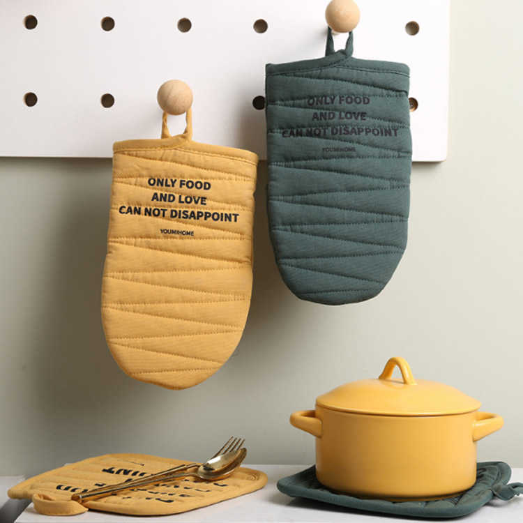 北欧風 耐熱鍋つかみ 耐熱ミトン 北欧 キッチン用品 食器 調理器具 新作 2枚セットイエロー 2枚セットグリーン