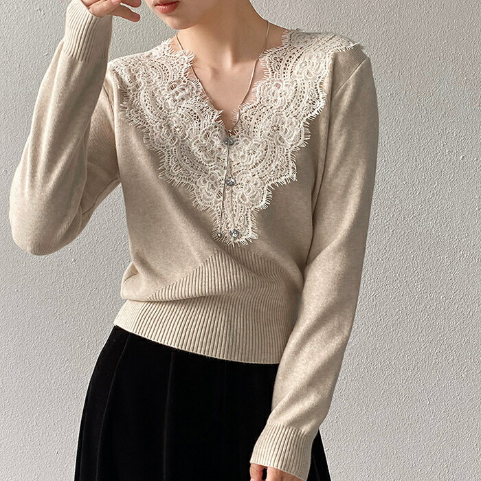 ニットセーター インナー レディース Vネック 襟レースデザイン ニット ニットインナー トップス 長袖 セーター 長袖セーター プルオーバー ニットソー インナー 秋 冬 ショート 秋冬 薄手 無地 ふわふわ シャギーセーター もこもこ 柔らか 暖か 繊細 レースフリル ニットセーター エアリー 質感 薄手 暖かく 重ね着 肌触り 抜群
