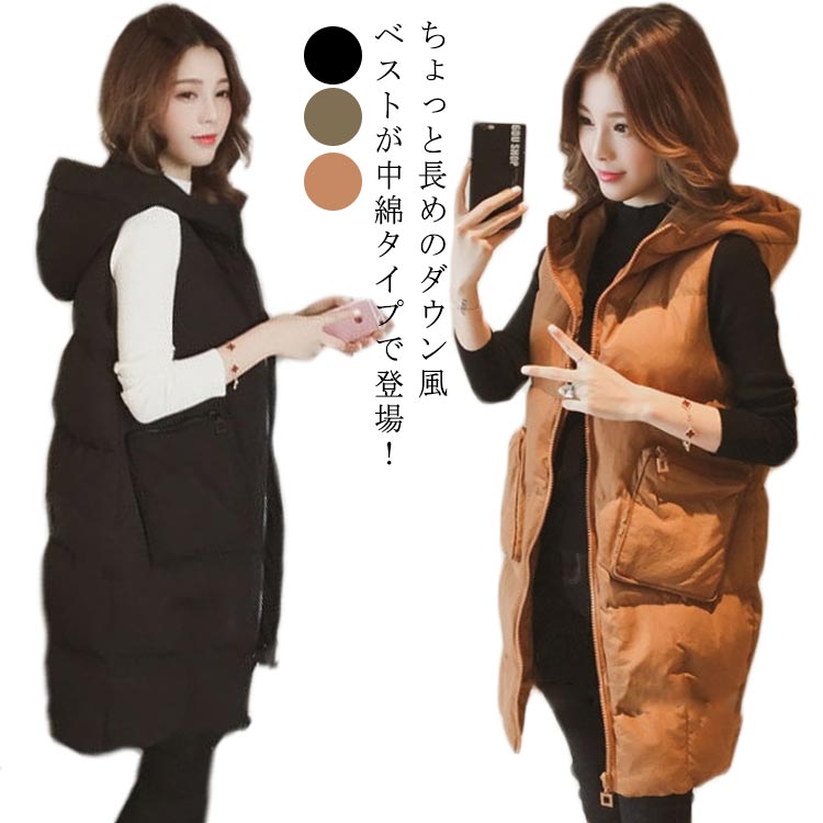 レディース アウター ロングダウンベス トップス ベスト 早い者勝ち キャメル ブラック グリーン M L XL 2XL 3XL 4XL 5XL