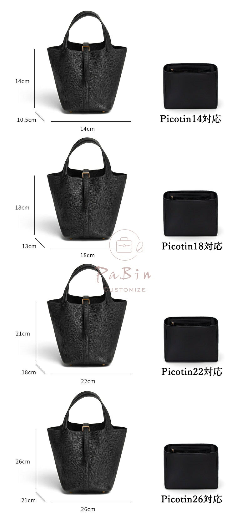 全25色 バッグインバッグ エルメスH バッグ 小物 ブランド雑貨 通販 picotin14対応 picotin18対応 picotin22対応 picotin26対応
