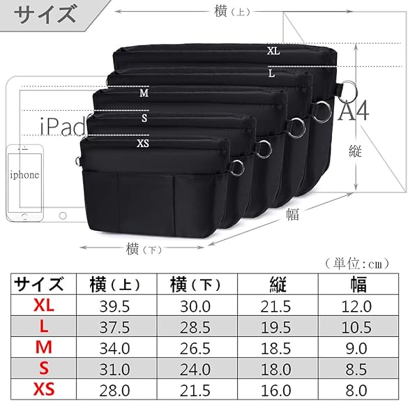 バッグインバッグ 自立 インナーバッグ バッグ 小物 ブランド雑貨 人気 XS S M L XL ブラック グレー ベージュ