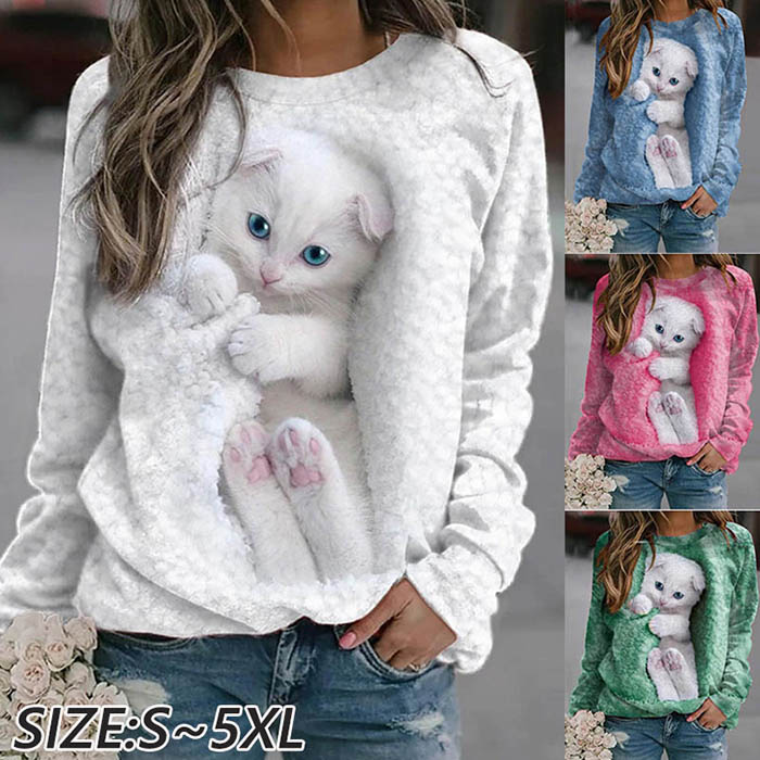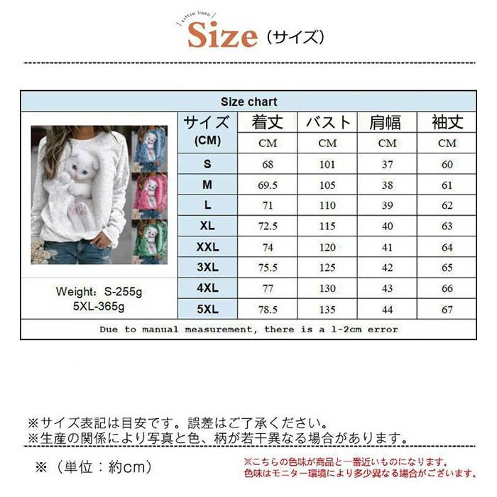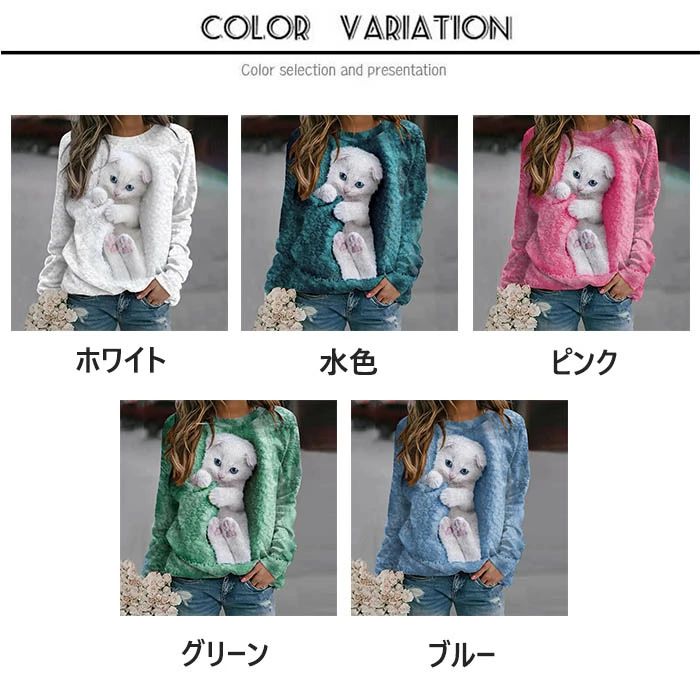 トレーナー イラスト レディース 3D レディースファッション 通販 ホワイト 水色 ピンク グリーン ブルー S M L XL 2XL 3XL 4XL 5XL