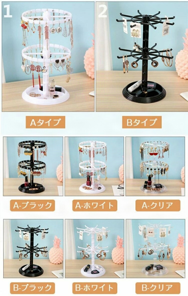 アクセサリースタンド 小物収納 回転し ジュエリー アクセサリー用品 収納ボックス ケース 新作 A-ブラック(2個) A-ホワイト(2個) A-クリア(2個) B-ブラック(2個) B-ホワイト(2個) B-クリア(2個) A-ブラック(1個)+B-ブラック(1個) A-ホワイト(1個)+B-ホワイト(1個) A-クリア(1個)+B-クリア(1個)