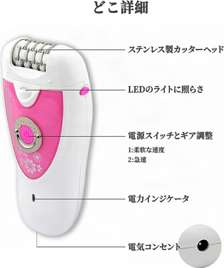 電気脱毛器 USB給電式 電気エピレー ピンク グリーン