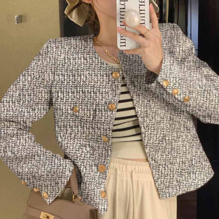 ツイードジャケット ノーカラ― チェッ レディースファッション 早い者勝ち ブラック ホワイト グレー S M L XL 2XL