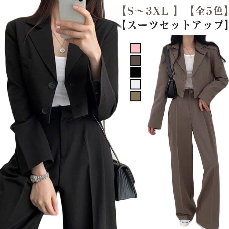 カジュアル オフィス レディース 2点 スーツ セットアップ パンツスーツ 特集 ピンク キャメル ベージュ ホワイト ブラック S M L XL 2XL 3XL