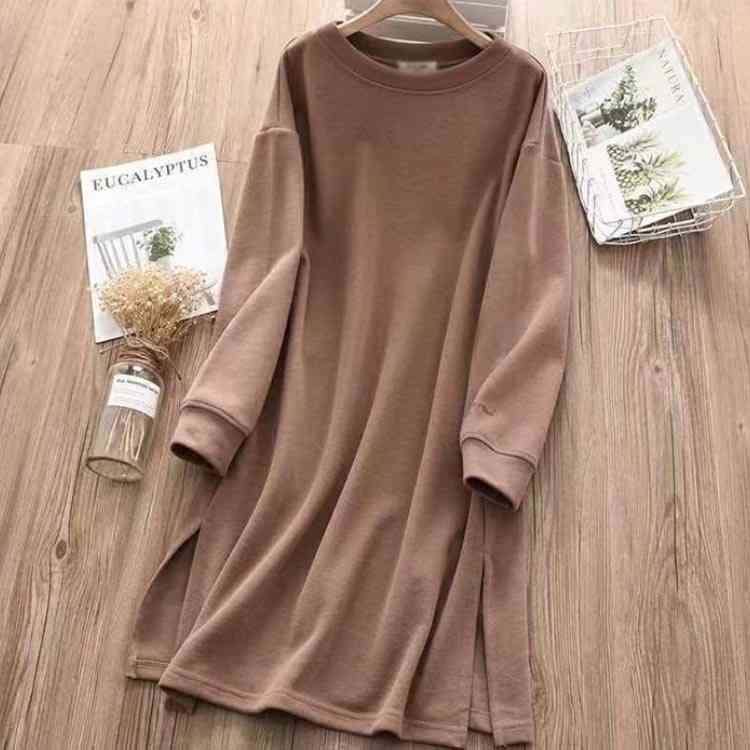 春秋冬 チュニック サイドスリット 長 チュニック 新作 パープル ブラック キャメル M L XL 2XL 3XL