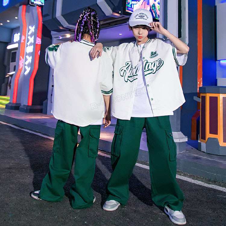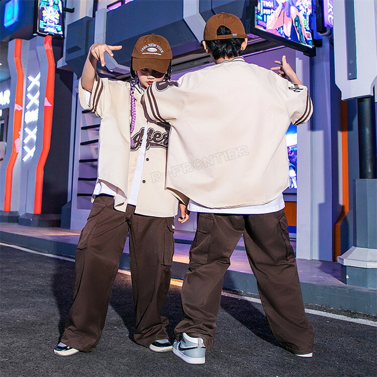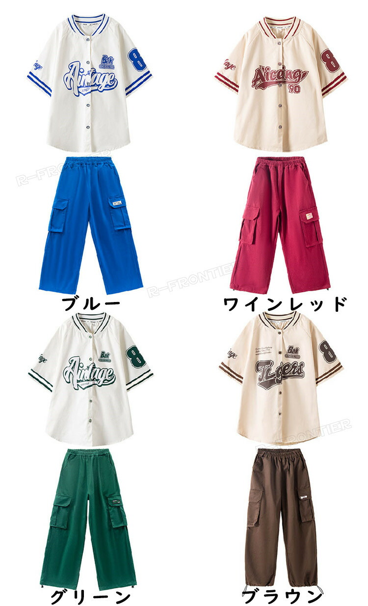 ベースボールシャツ ダンス 衣装 ヒッ 体操 ダンス 社交ダンス ウェア 人気 茶色#Brown ワインレッド#Wine Red 青色#Blue 緑色#Green トップスのみ トップス+パンツ トップス+白Tシャツ+パンツ