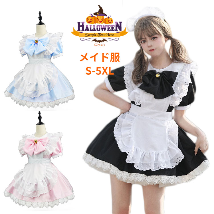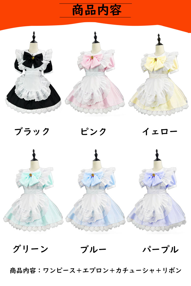 ハロウィン 衣装 メイド服 可愛い コ コスプレ 変装 仮装 ワンピース 通販 (画像色)ブラック (画像色)ピンク (画像色)イェロー (画像色)グリーン (画像色)ブルー (画像色)パープル S M L XL 2XL 3XL 4XL 5XL