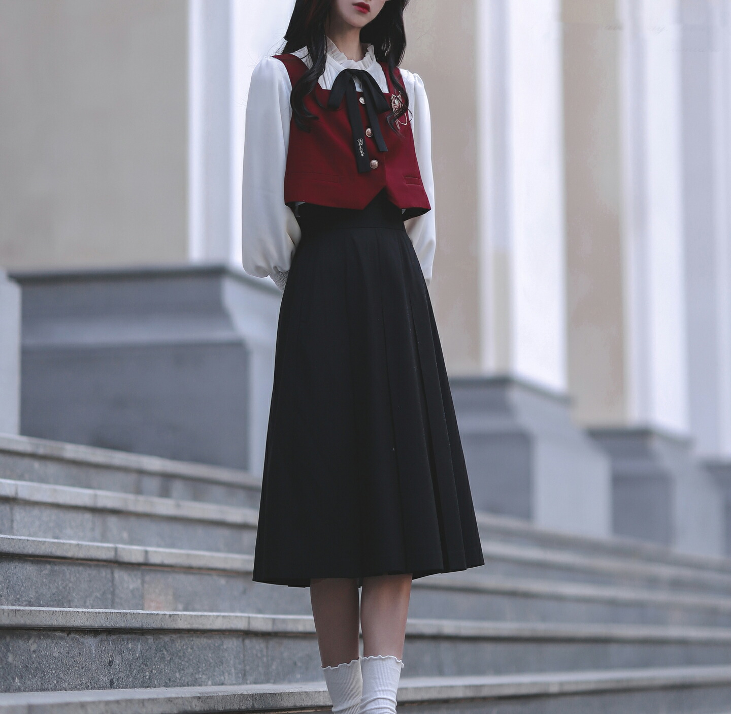 シアースリーブ ドッキングシャツ ボウタイシャツブラウス