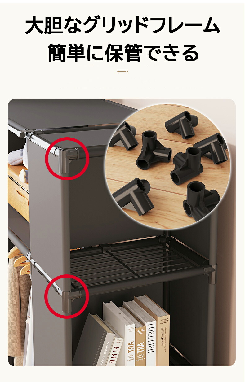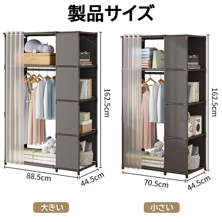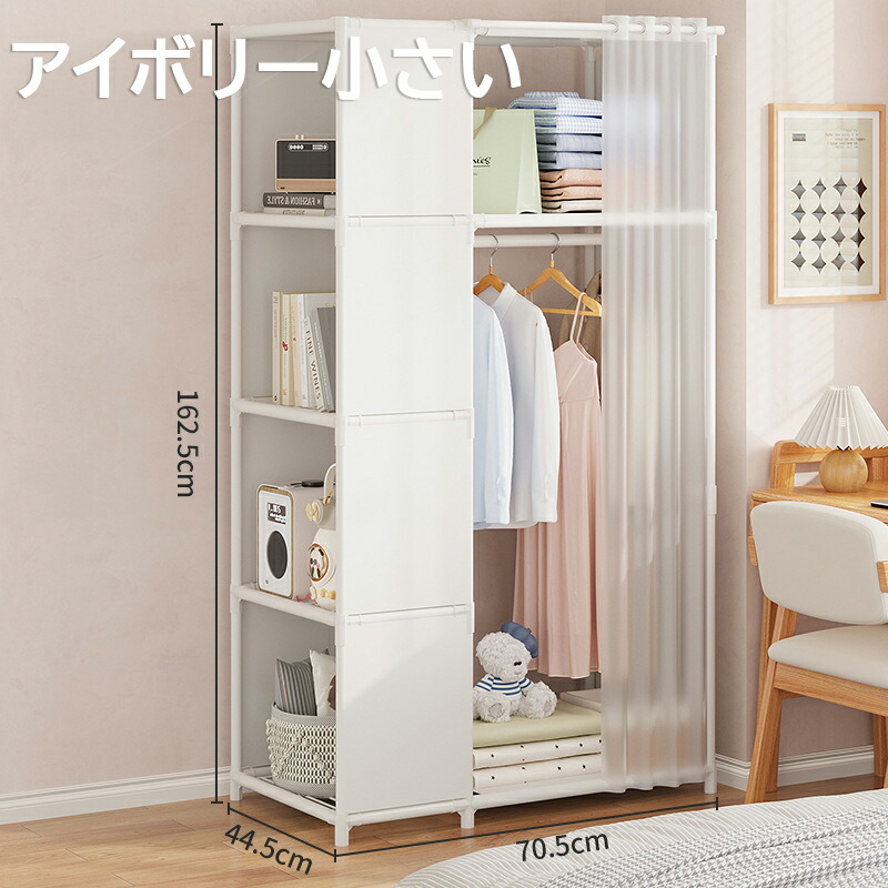 衣類収納ラック ワードローブ カバー付 ブラック小さい ブラック大きい アイボリー小さい アイボリー大きい