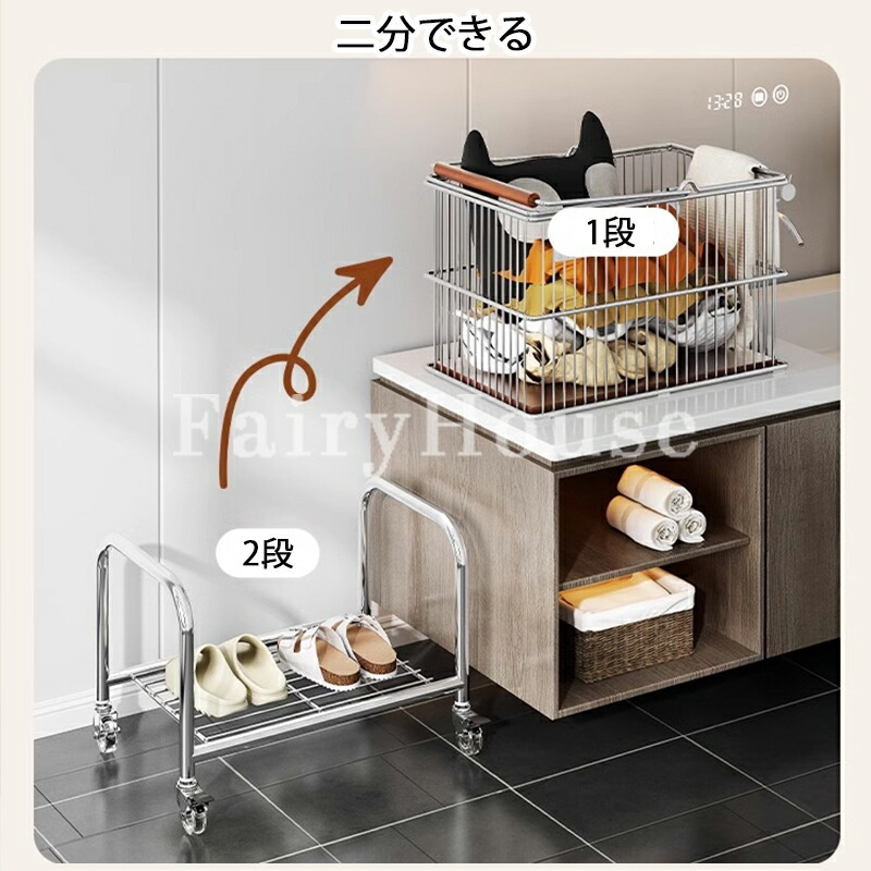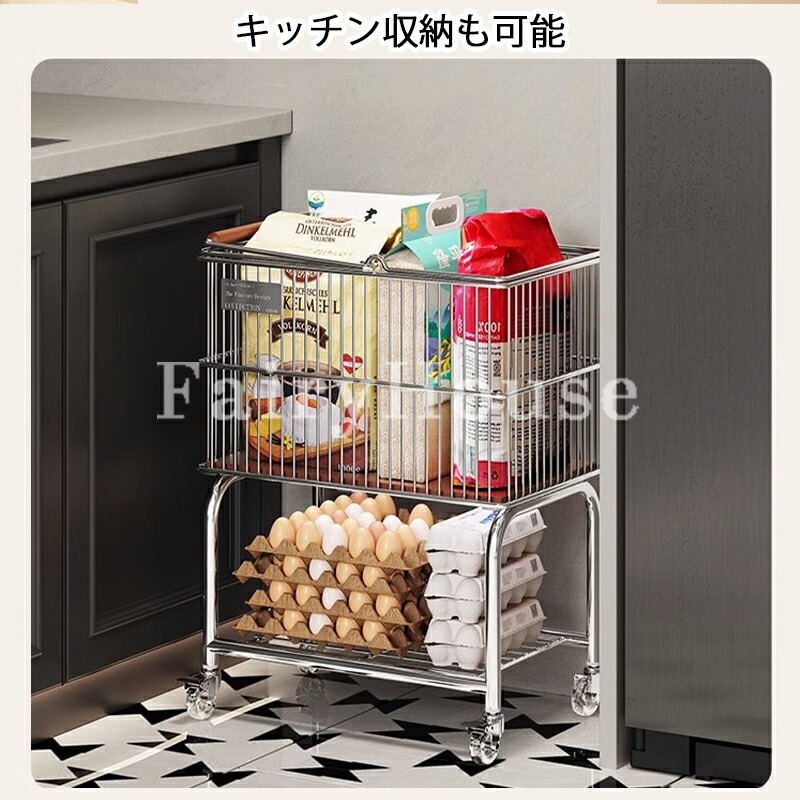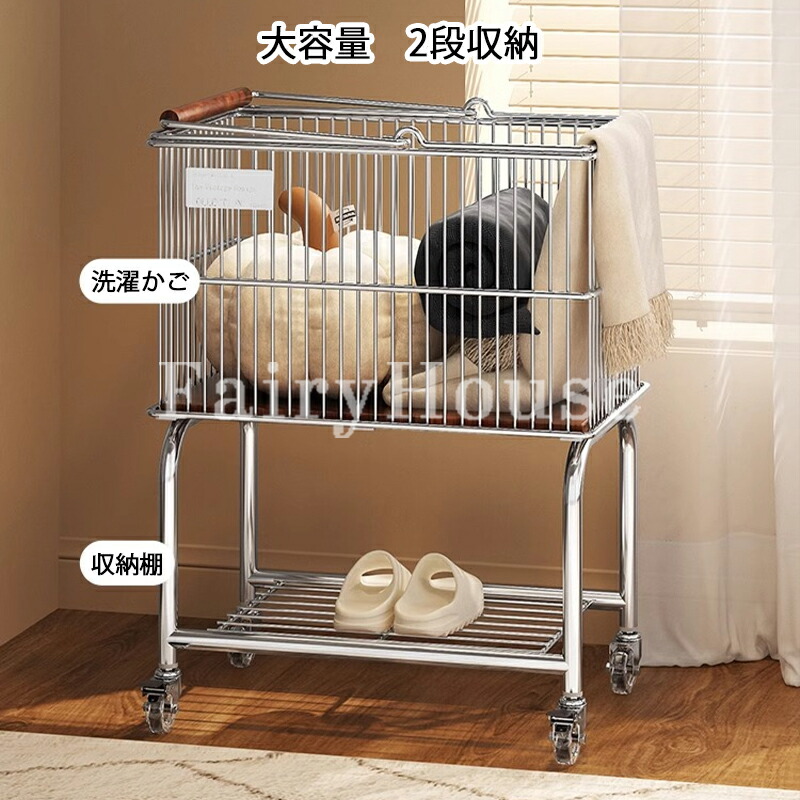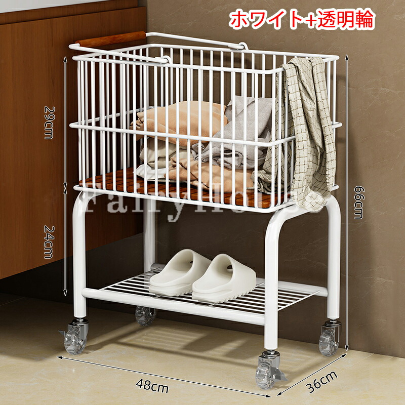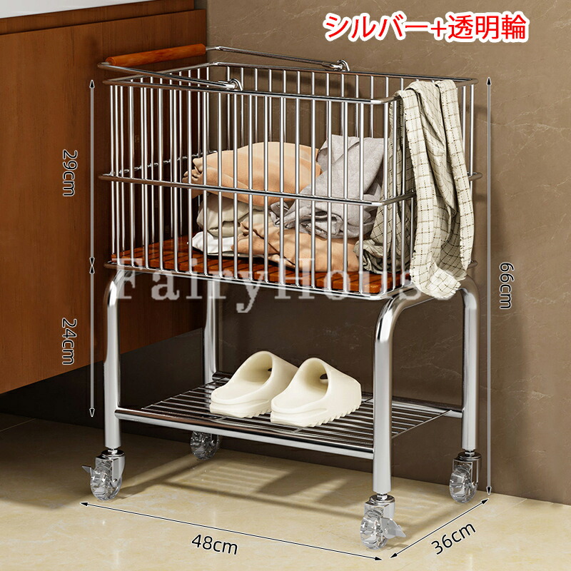 新作ランドリーバスケット 2段 ラック シルバー+ブラック輪 ホワイト+ブラック輪 シルバー+透明輪 ホワイト+透明輪
