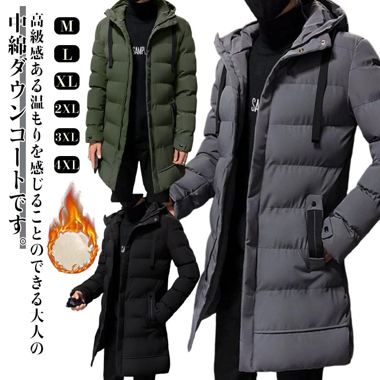 ダウンロングコート メンズ ベンチコー コート ジャケット 新作 ブラック グリーン グレー M L XL 2XL 3XL 4XL