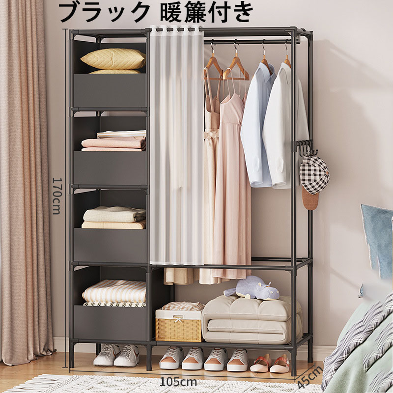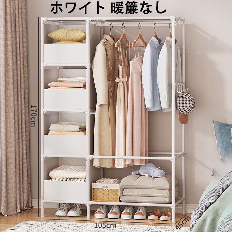 ワードローブ クローゼット ハンガーラ ホワイト ブラック イエロー グレー 暖簾なし 暖簾付き