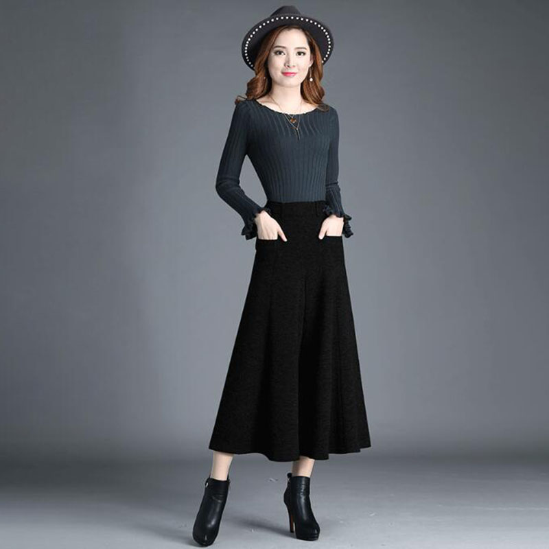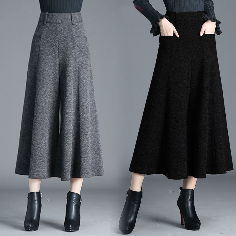 ミモレ丈 Aライン ワイドパンツ ガウ グレー ブラック S M L XL 2XL 3XL 4XL