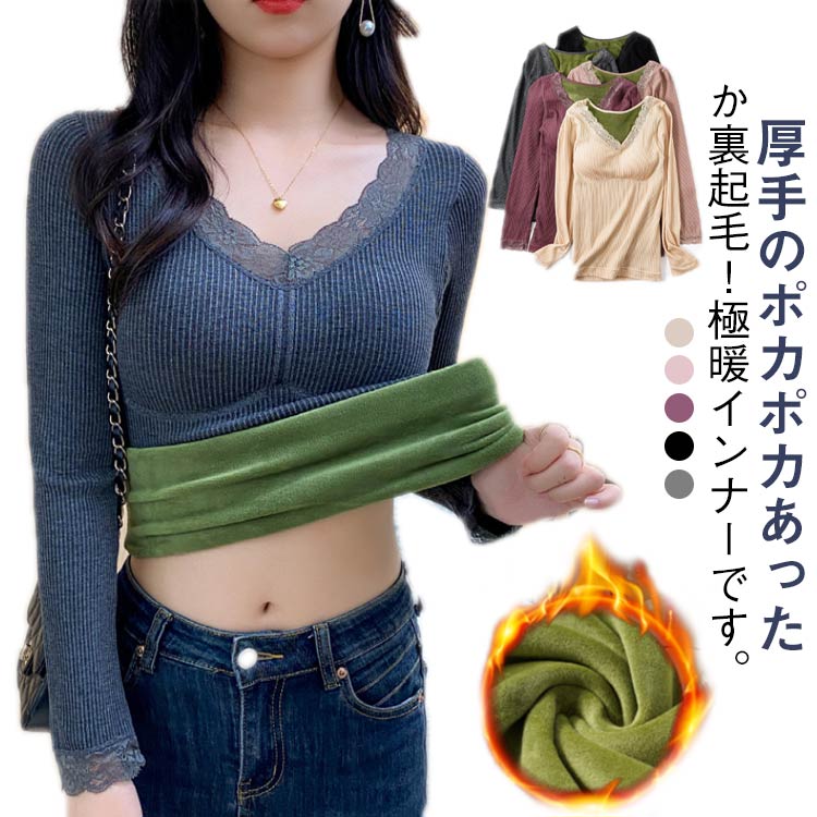 あったかインナー トップス カップ付き レディース インナー 下着 インナーシャツ 新登場! グレー ブラック ベージュ ピンク パープル