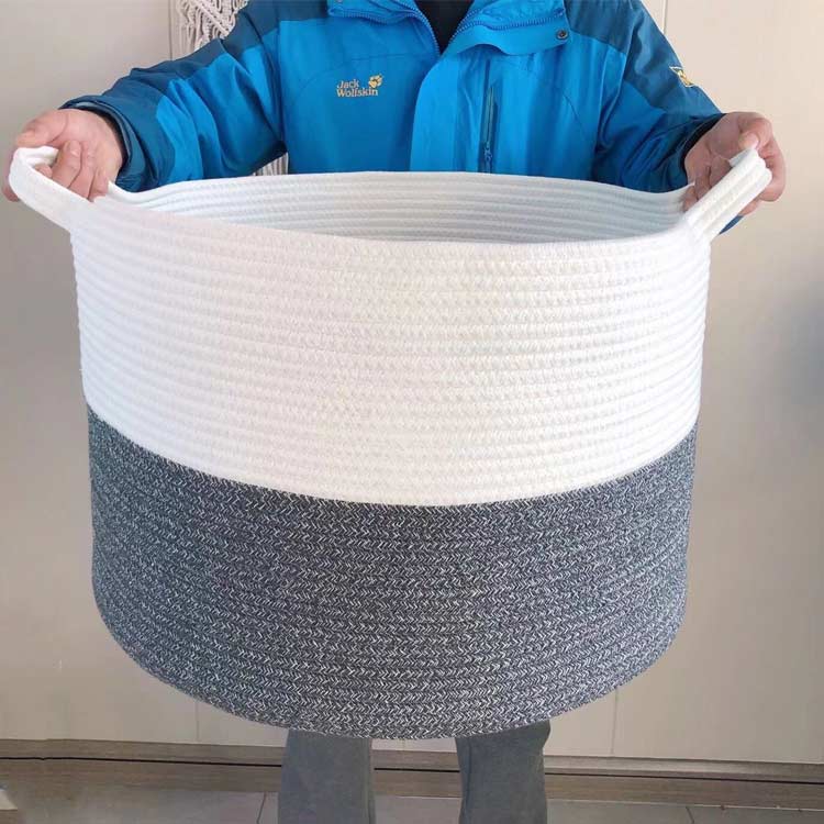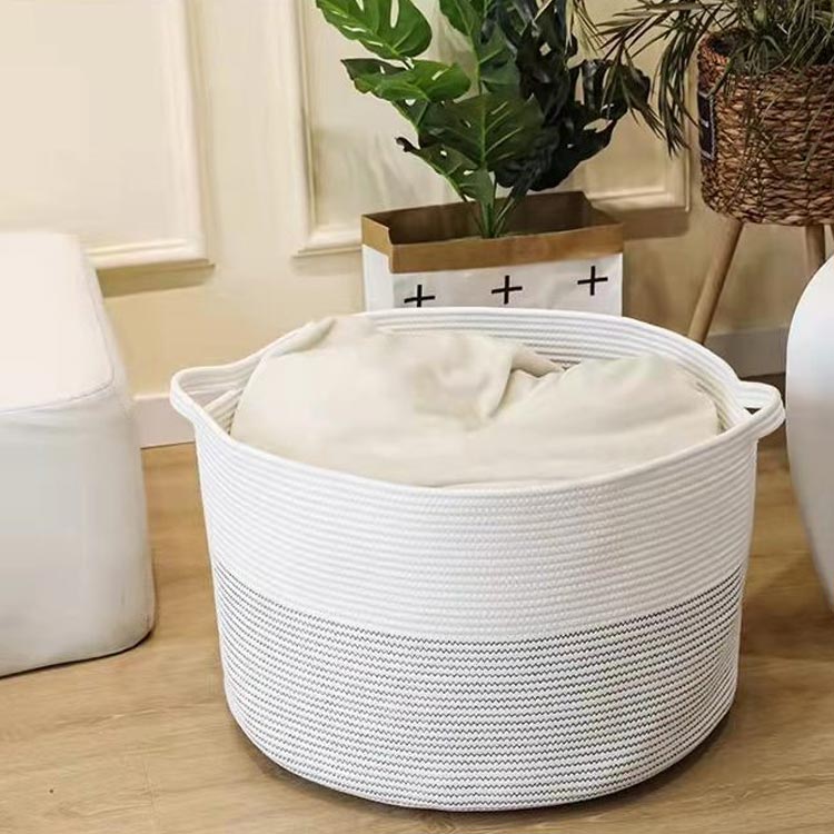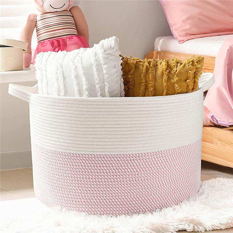 綿ロープバスケット 収納かご 洗濯かご ホワイト ピンク ブラウン ダークグレー ベージュ ダークブルー ブラック ライトブラウン グレーホワイト