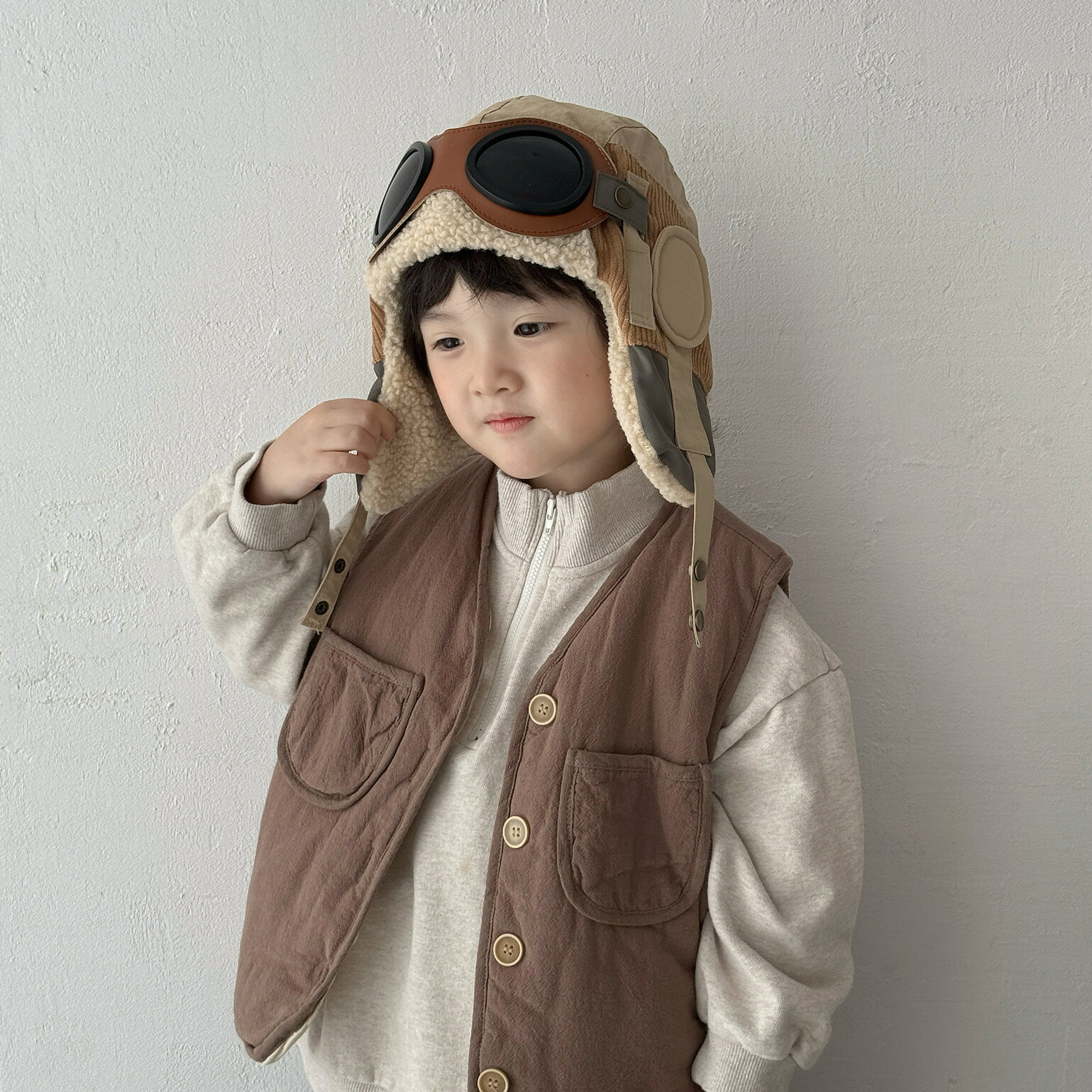 パイロット帽 耳あて ベビー帽子 ニット秋冬 厚手 子供 キッズ用 防寒 防風 キッズ かわいい パイロットキャップ もふもふ 飛行帽 フライトキャップ 登山帽 裏起毛 おしゃれ 男女兼用 防寒帽子