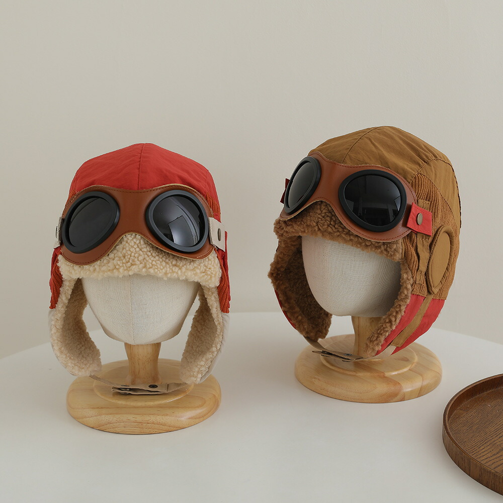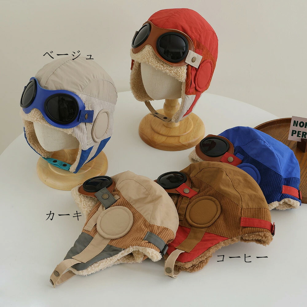 パイロット帽 耳あて ベビー帽子 ニッ キッズ 帽子 キャップ 人気 ベージュ カーキ コーヒー ブルー レッド