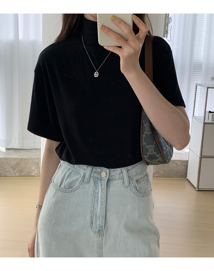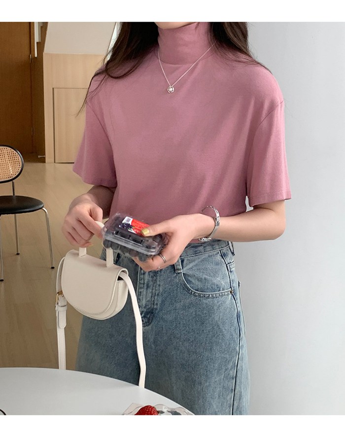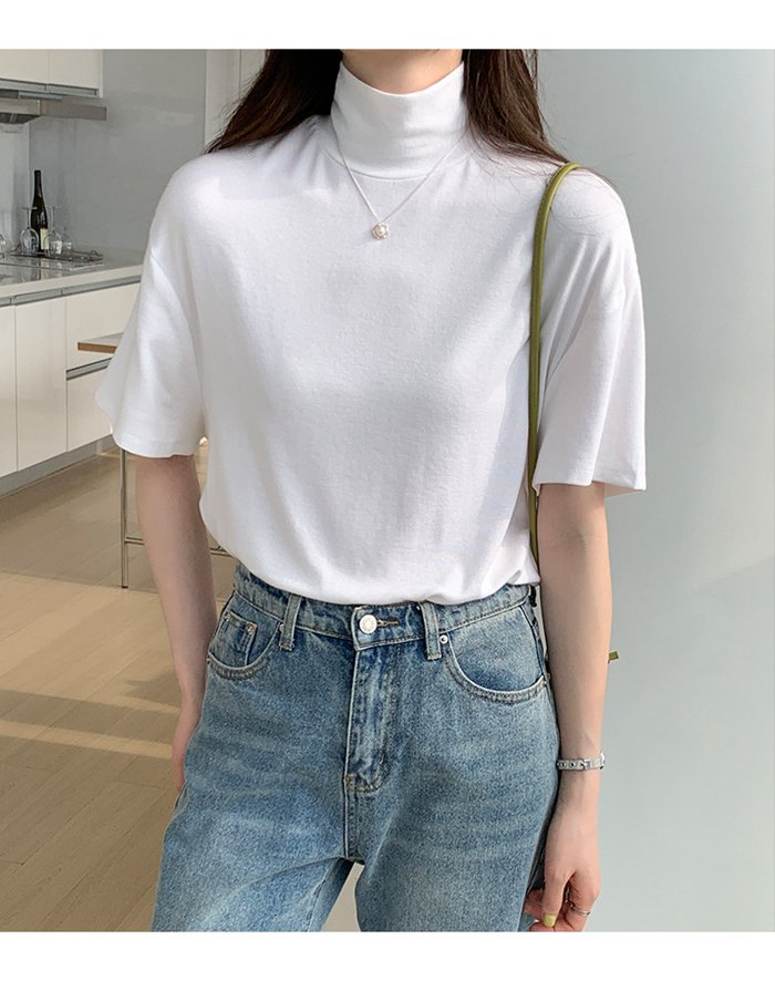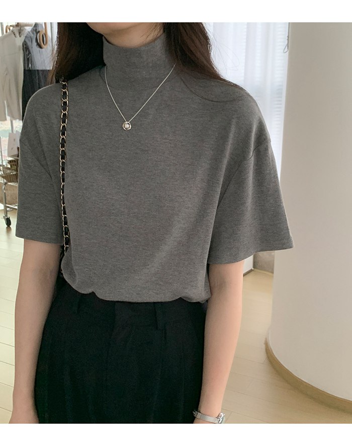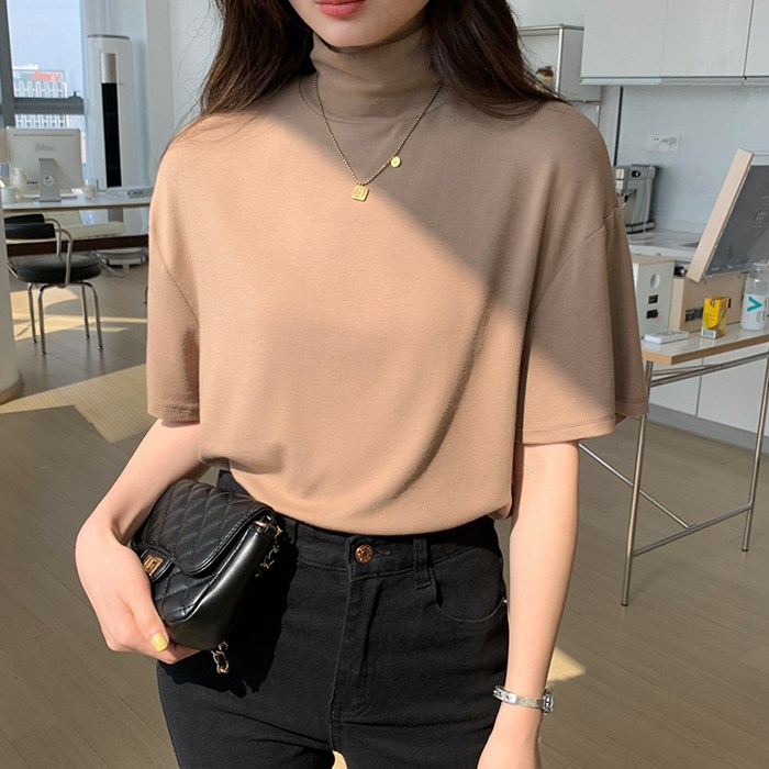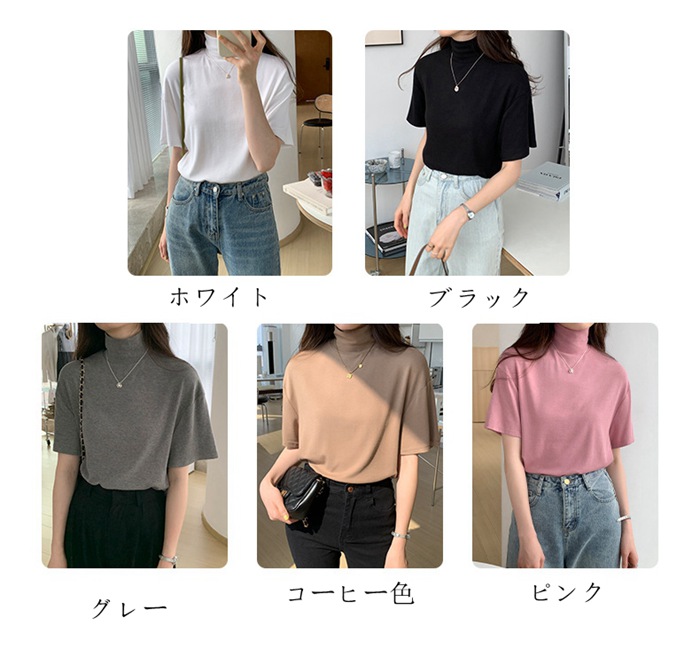 Tシャツ レディース ハイネックカット レディースファッション 通販 ホワイト ブラック コーヒー色 グレー ピンク M L XL