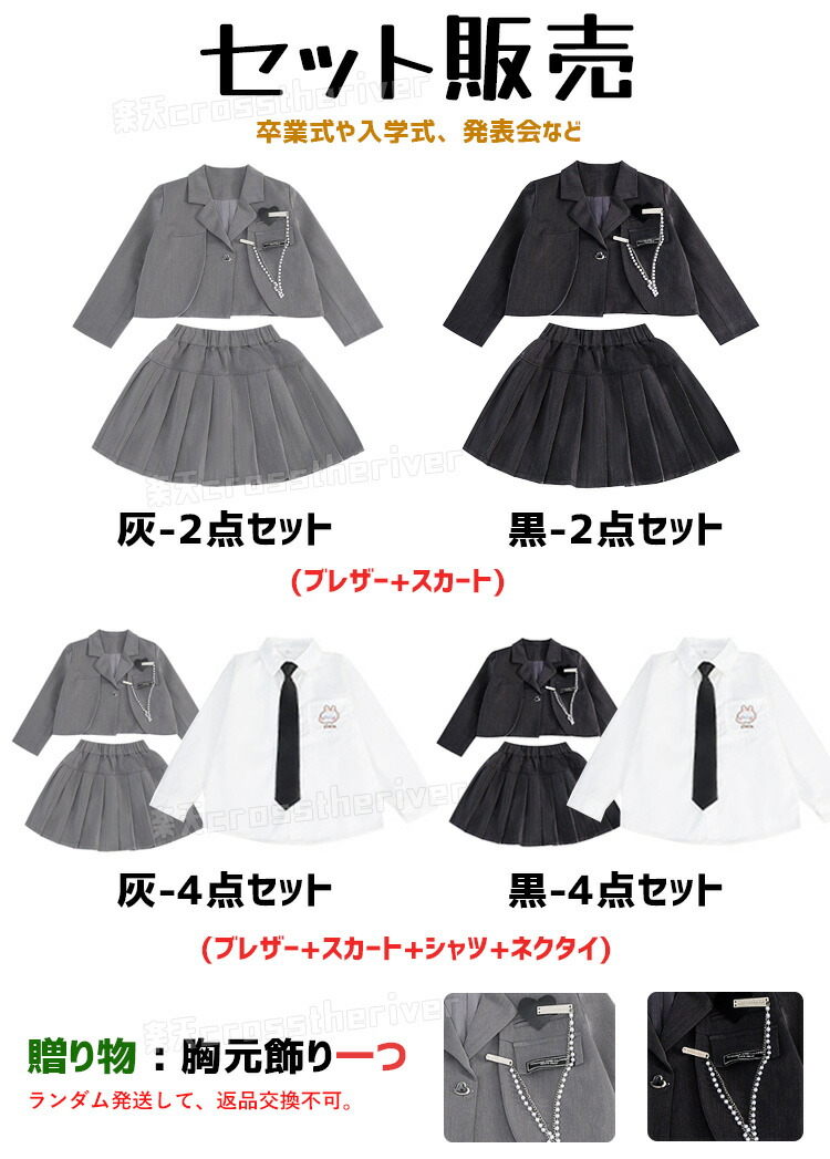 卒業式 スーツ 女の子 小学校女子 な キッズ ベビー マタニティ 豊富な品揃え 黒-2点セット 黒-4点セット 灰-2点セット 灰-4点セット 110 120 130 140 150 160 170