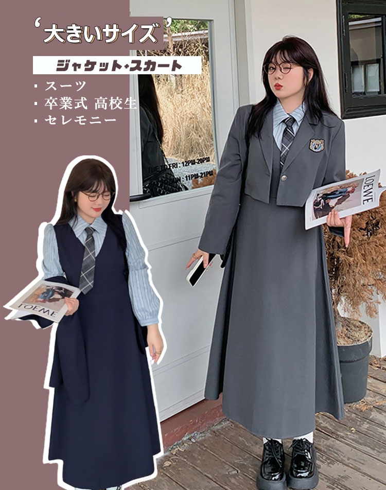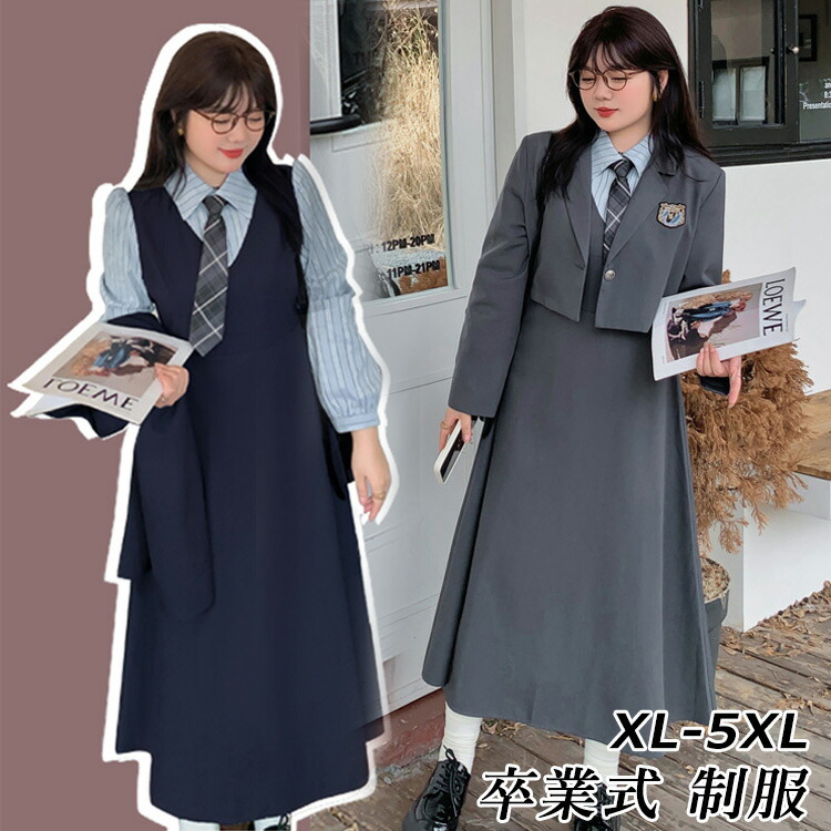 卒業式 スーツ 女の子 大きいサイズ キッズ スーツ カジュアルセットアップ スーツ 豊富 灰ブレザー 灰ワンピース 紺ブレザー 紺ワンピース 灰ブレザー+灰ワンピース 紺ブレザー+紺ワンピース XL 2XL 3XL 4XL 5XL