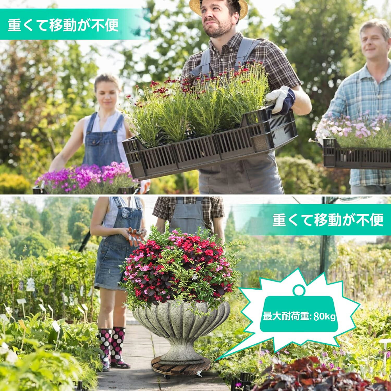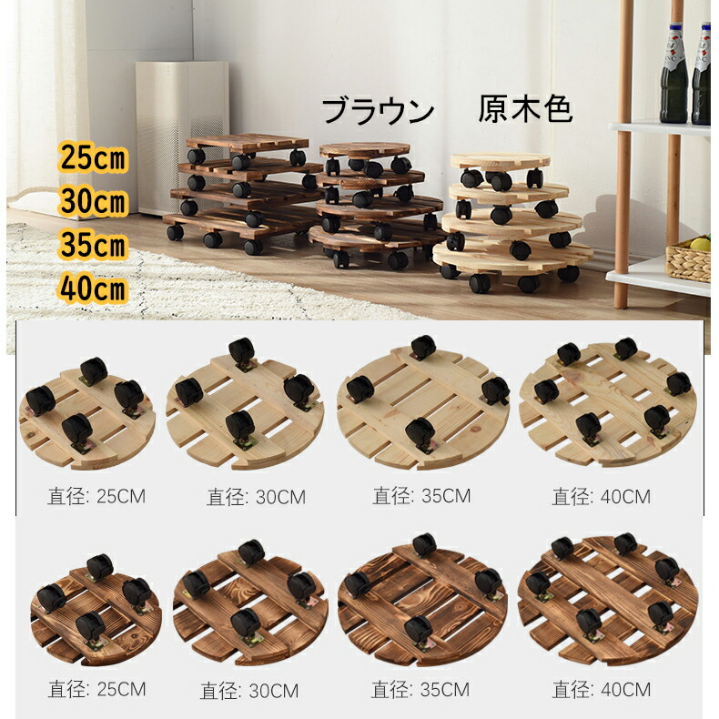 植木鉢台 木製鉢置台 キャスター付き 原木色 ブラウン 25cm 30cm 35cm 40cm