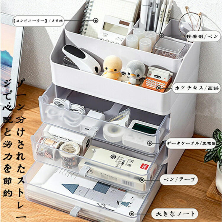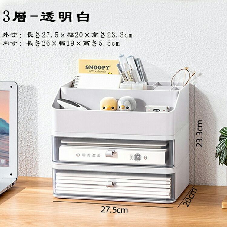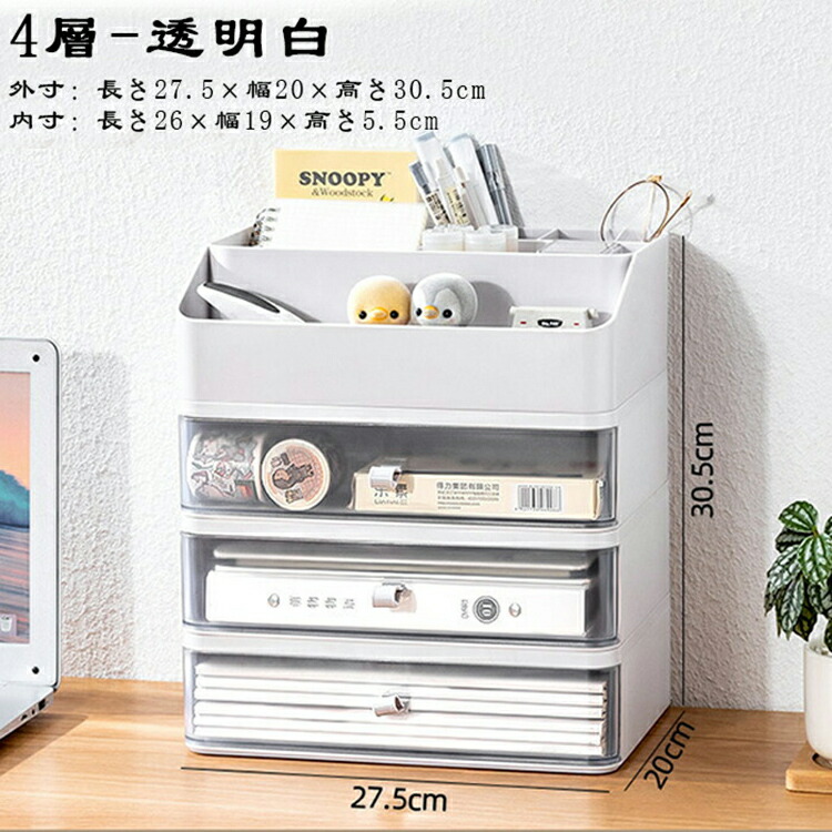 引き出しデスクファイル収納ラック 引き 透明白 2層 透明白 3層 透明白 4層 透明白 5層 ホワイト 2層 ホワイト 3層 ホワイト 4層 ホワイト 5層