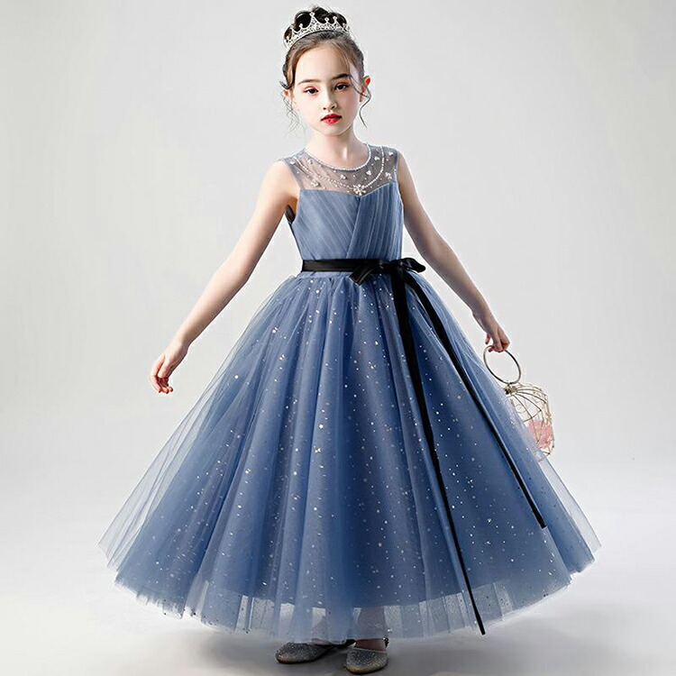 子供 ドレス ブルー ピアノ発表会 中 キッズ ドレス 早い者勝ち 100cm 110cm 120cm 130cm 140cm 150cm 160cm
