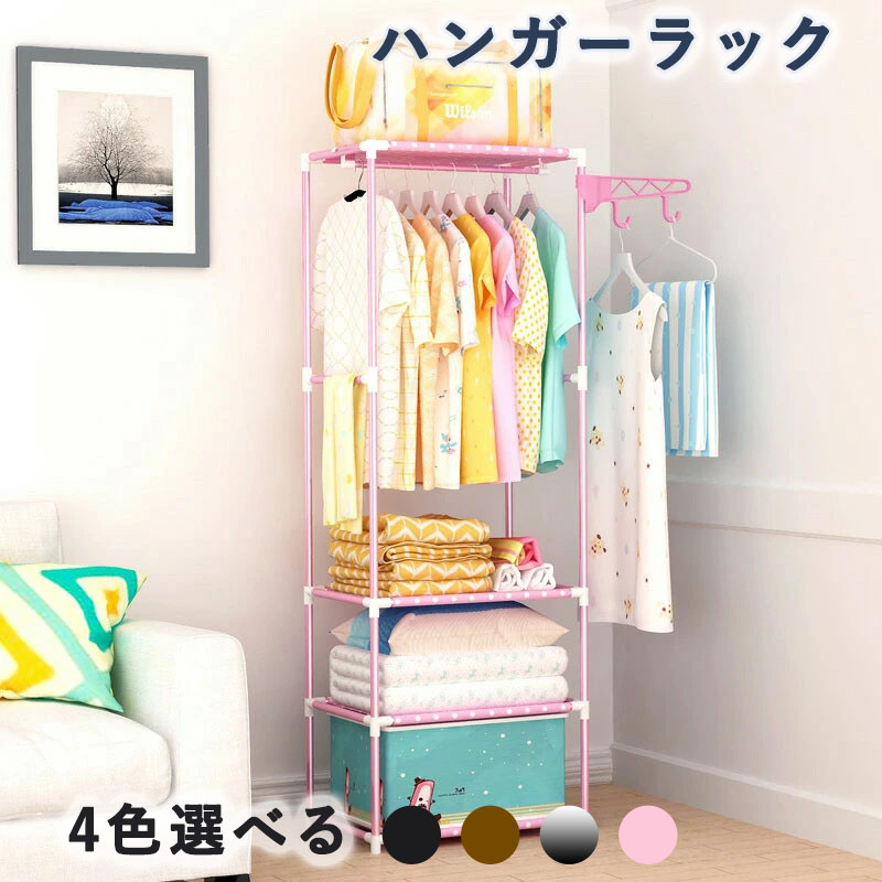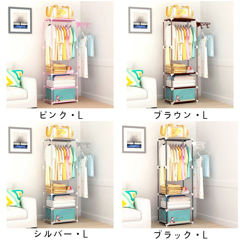 ハンガーラック コーナー 洋服ラック ブラック ブラウン ピンク シルバー S L