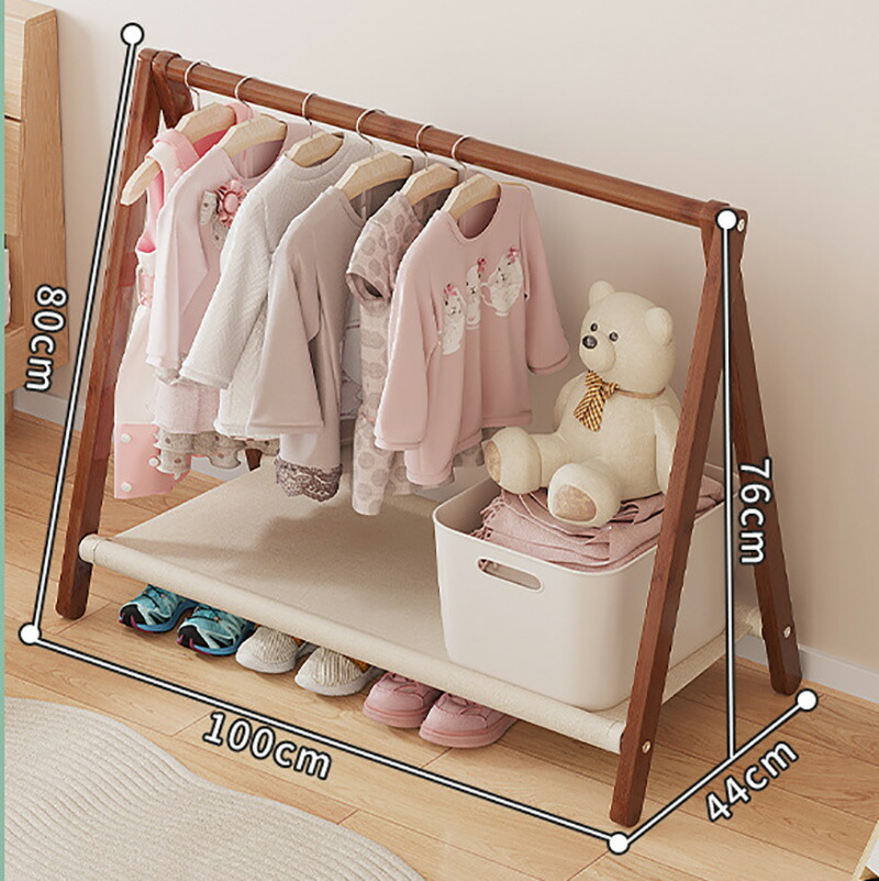 ハンガーラック 子供用 ハンガー 木製 自立型 コートハンガー おしゃれ シンプル 洋服 衣類 子供服 収納 省スペース 組立簡単 ベビー用 プレゼント (ナチュラル ブラウン 幼稚園
