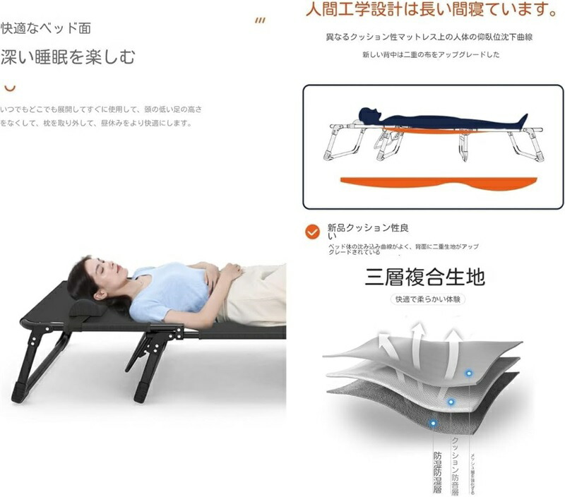 サマーベッド 簡易ベッド 折りたたみベ アウトドア アウトドア用寝具 コット 新登場! ブラック グレー