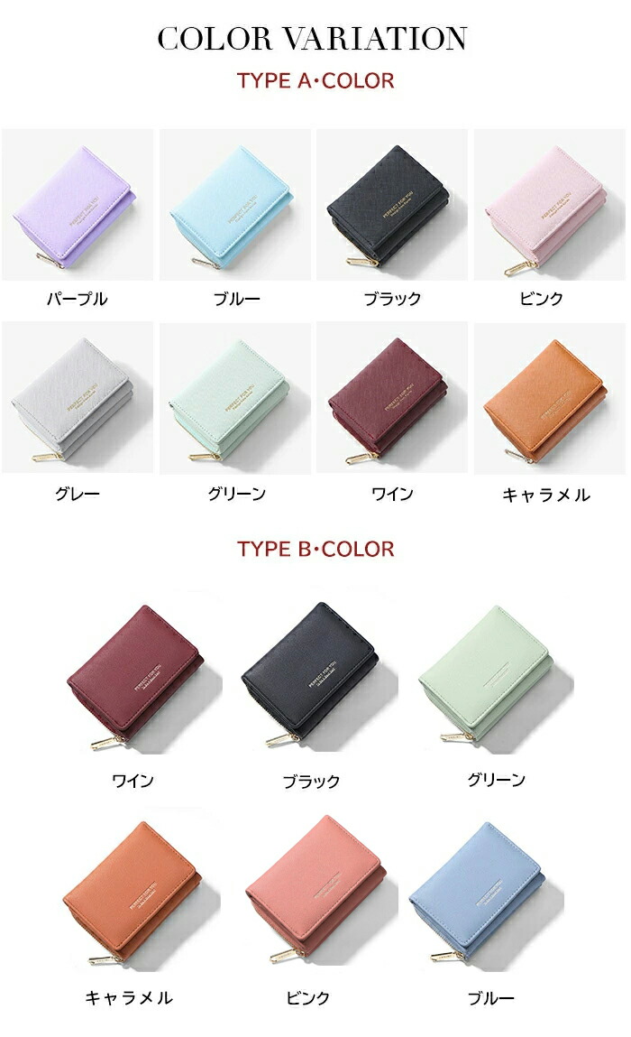 財布 レディース 三つ折り財布 大容量 バッグ 小物 ブランド雑貨 続々登場 TYPE Aパープル TYPE Aブル一 TYPE Aブラック TYPE Aビンク TYPE Aグレ一 TYPE Aグリーン TYPE Aワイン TYPE Aキャラメル TYPE Bワイン TYPE Bブラック TYPE Bグリーン TYPE Bキャラメル TYPE Bピンク TYPE Bブルー