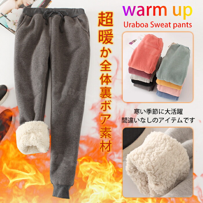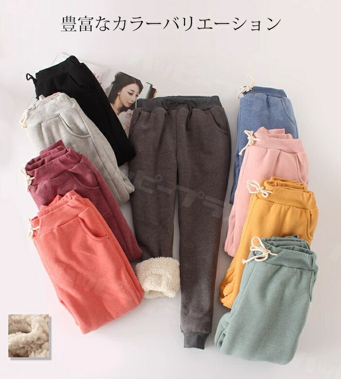 2点購入で600円オフクーポンあり♪ 極暖 かわいい 裏ボア スウェットパンツ レディース 秋 冬 裏起毛 トレンド おしゃれ ぬくぬく 綿 暖パン ジョガー くすみカラー 暖かい 裏ボアパン パンツ