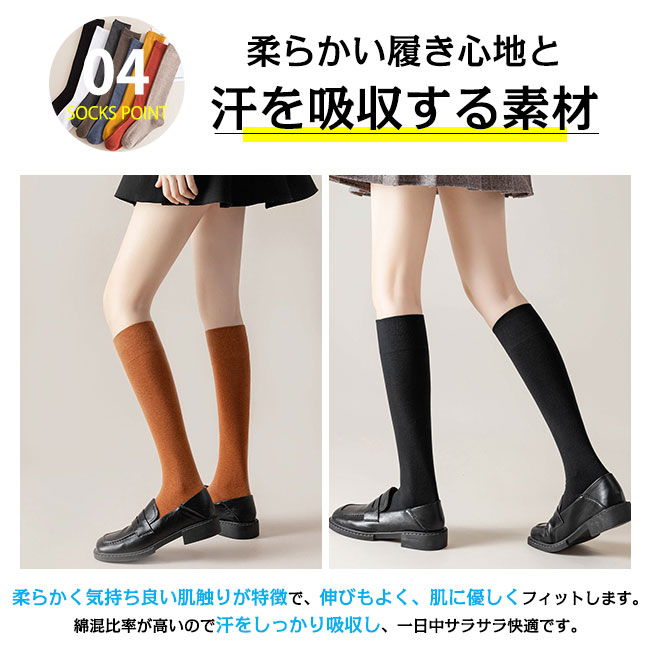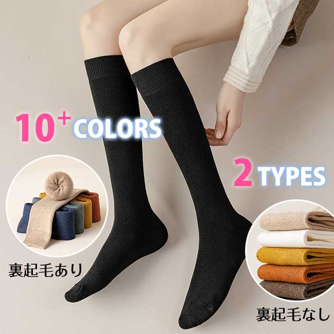 10足セット 靴下 レディース 綿 ハイソックス スクールソックス パイル地 裏起毛 裏起毛なし 裏毛 シンプル くつした 防寒 無地 暖かい 厚手 冷え取り 冷えとり 冬新作 保暖 秋 冬用