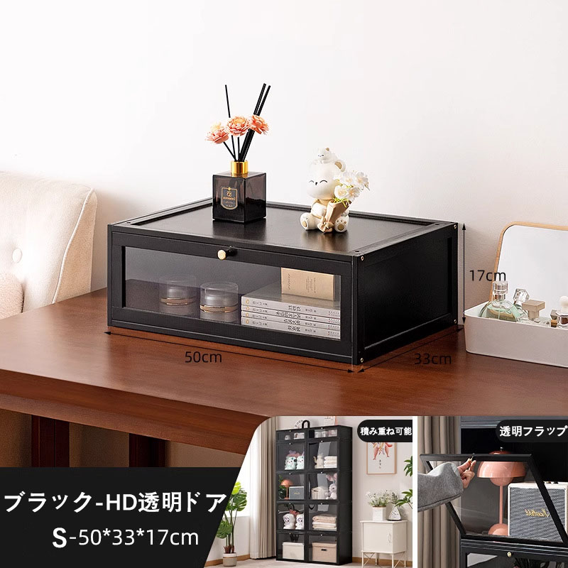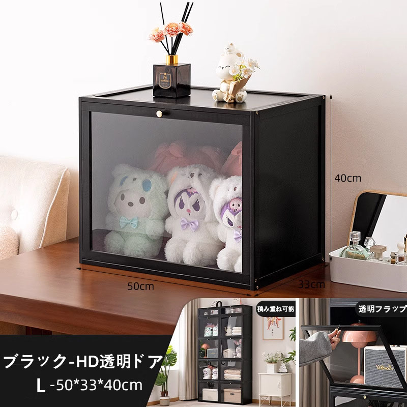 アイデア∞の自由な収納 キューブボック HD透明ドア 波形透明ドア 茶色 原色 ブラック