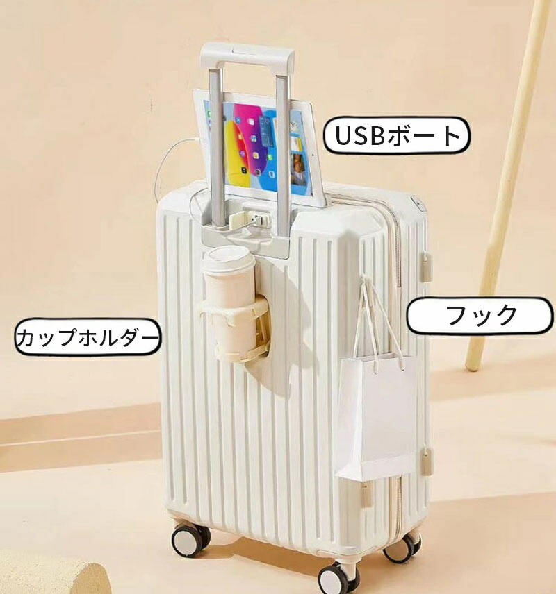 スーツケース USBポート TANOBI キャリーバッグ ストッパー付き キャリーケース カップホルダー スマホスタンド 超軽量 ファスナー式 TSAロック搭載 可愛い 2~14泊 小 フック機能付き