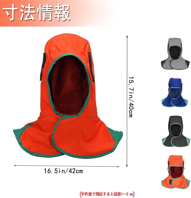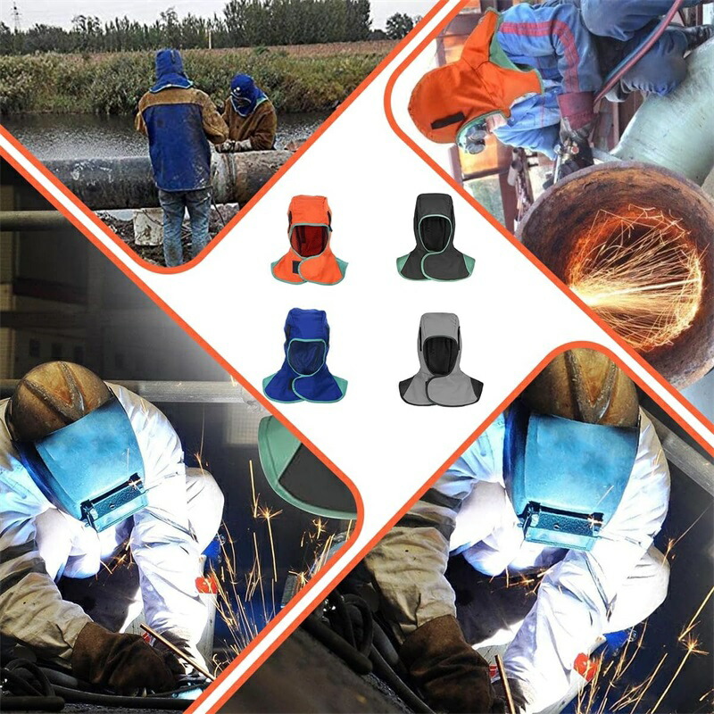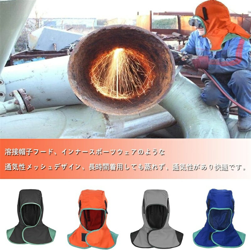 溶接フード 頭巾 難燃性 保護具 溶接 オレンジ ブルー ブラック グレー
