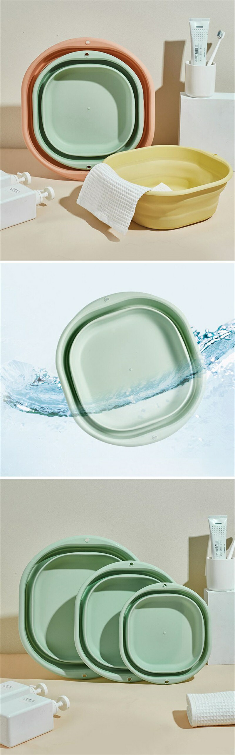 折りたたみ たためる 洗面器 洗い桶 バス用品 洗面器 風呂桶 早い者勝ち ピンク イエロー グリーン S M L