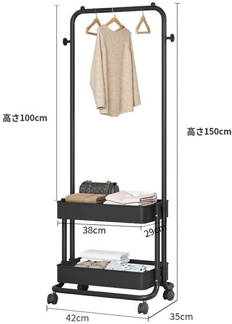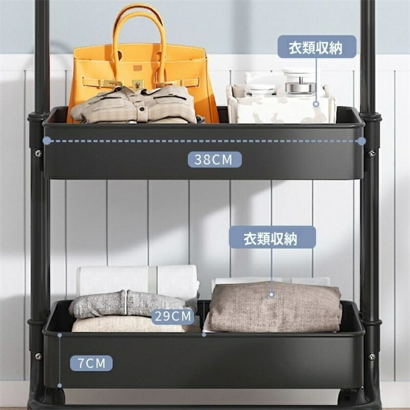 ハンガーラック コートハンガー 二重棚 ホワイト ブラック ブルー イエロー