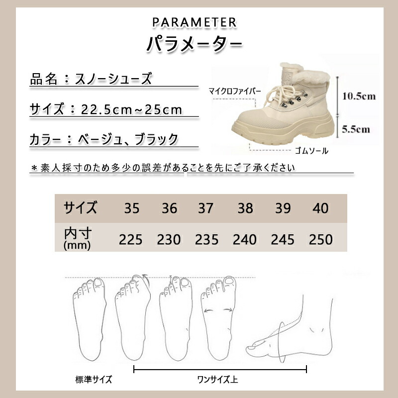 スノーシューズ レディース 裏起毛 ム 靴 人気 ベージュ ブラック 22.5cm 23cm 23.5cm 24cm 24.5cm 25cm