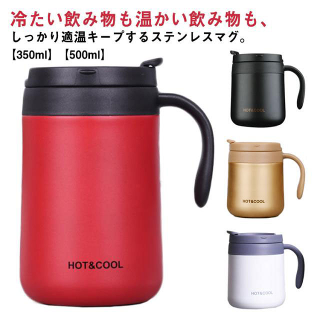 保温 コーヒー 取っ手付き 蓋付き ス キッチン用品 食器 調理器具 豊富な品揃え ホワイト ブラック ゴールド レッド 【350ml】 【500ml】