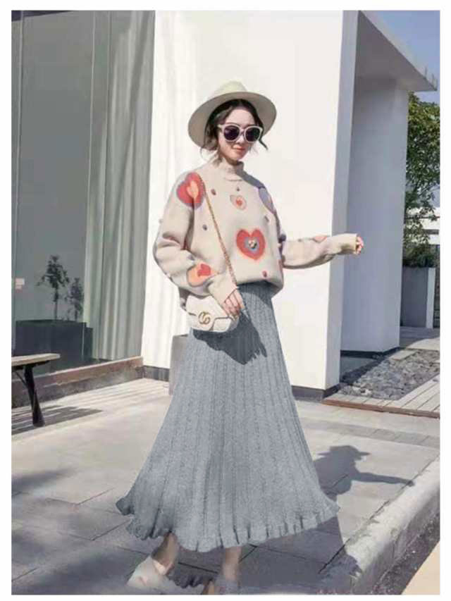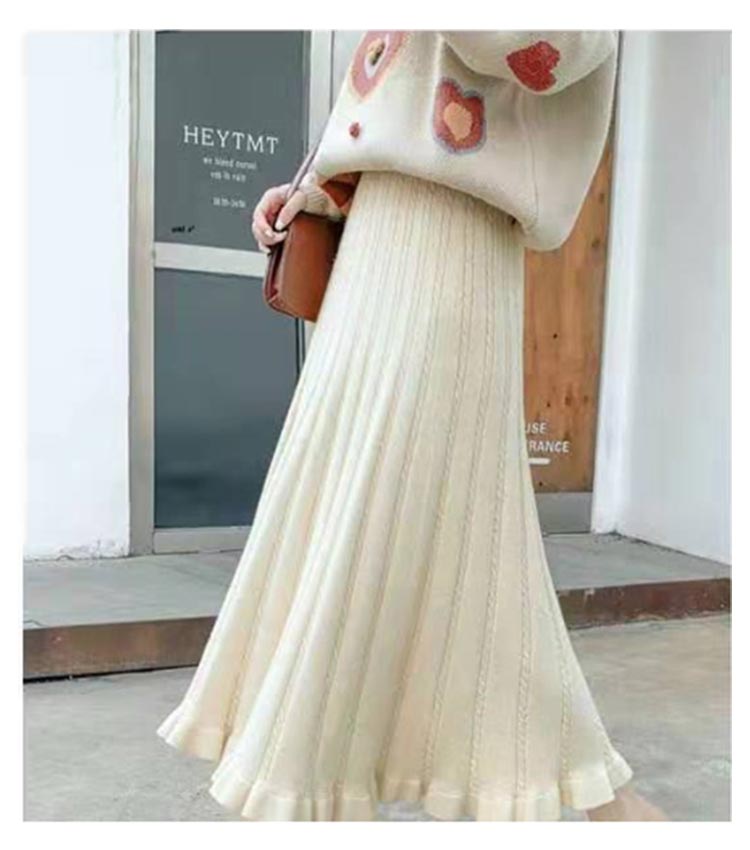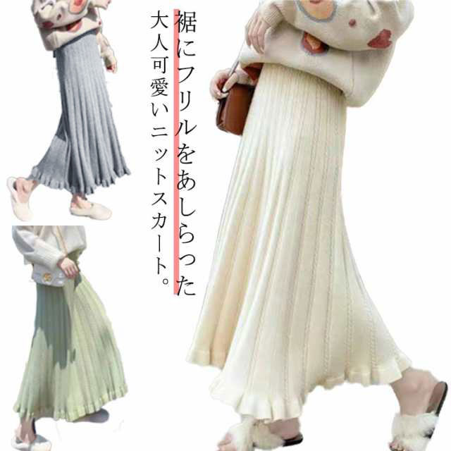 ニットスカート フレアスカート レディ ボトムス スカート 人気 グリーン ブラック オフホワイト グレー S M L XL